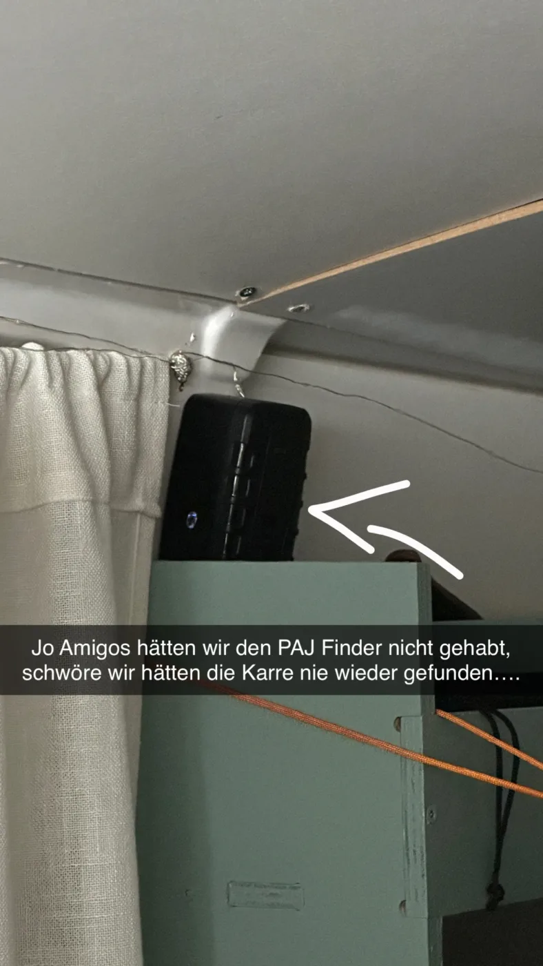 Mais lorsque nous avons voulu revenir au van le soir, la réalité nous a frappés — nous n’avions absolument aucune idée d’où nous l’avions garé. Toutes les rues se ressemblaient et nous n’avions prêté attention à aucun repère particulier. Alors que je commençais à me demander comment j’allais bien pouvoir expliquer cela à la police, ma copine s’est souvenue que nous avions le PAJ Finder avec nous et que je pouvais simplement localiser le van.