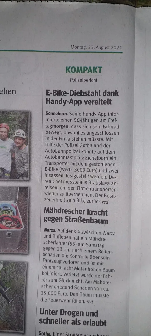 Mon vélo a été retourné indemne, et mon assurance eBike a couvert sans problème le petit cadenas de vélo. Par la suite, de nombreux collègues ont voulu savoir quel traceur j’utilisais — bien sûr, ma réponse a été PAJ. Quelques-uns d’entre eux en ont même commandé un immédiatement.