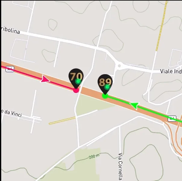 J’ai eu la chance de capturer le moment où deux de nos camping-cars se sont croisés sur la même autoroute en Italie.